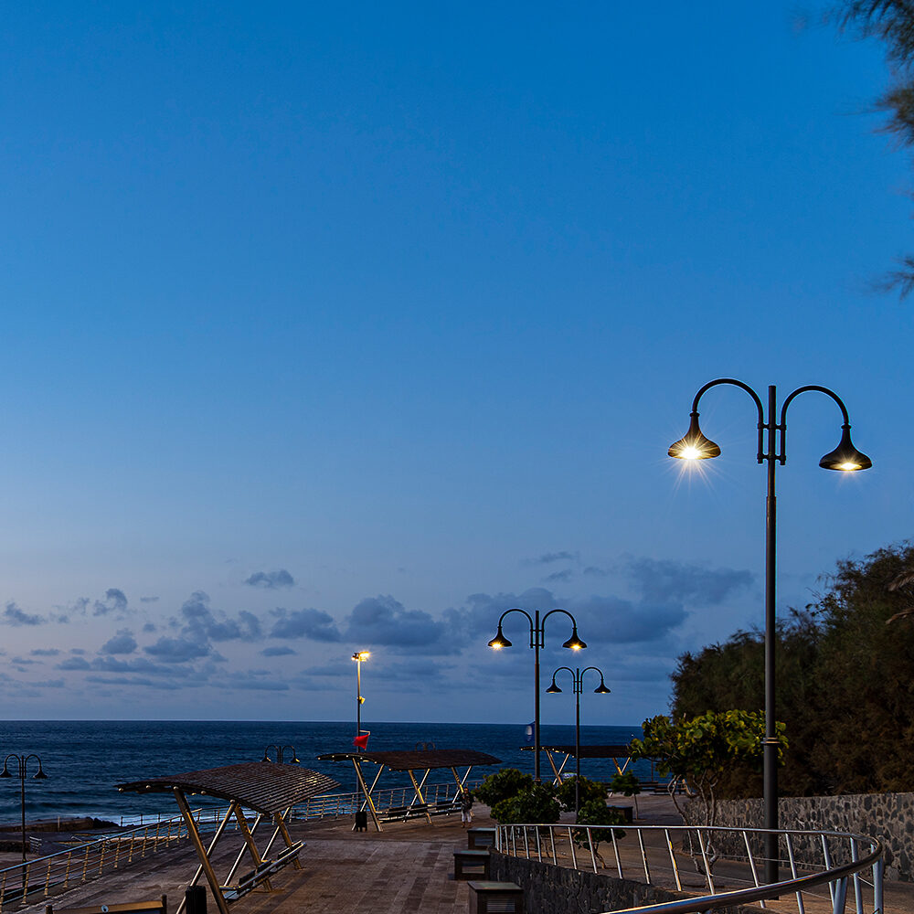 Ø102 steel pole with circular section tapered into two sections with final tenon, composed of tubular elements welded in sequence.